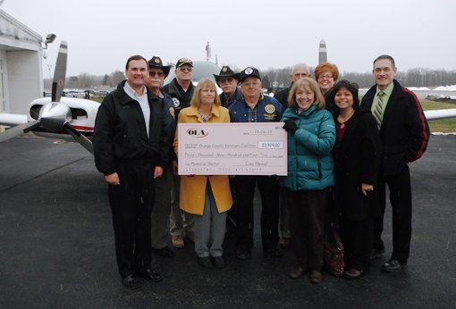 The check represents proceeds from the Run the Runway 5K Run and Walk held on October 26 at the Orange County Airport in Montgomery. A total of 175 runners and walkers participated in the first-time event held in honor of Louis Zamperini, the subject of Laura Hillenbrand’s best-selling nonfiction work Unbroken: A World War II Story of Survival, Resilience and Redemption. Zamperini was a runner on the 1936 Olympics team.